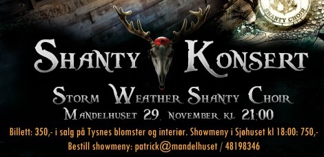 Pris for show: 350,- (billetter i salg på Tysnes Blomster og Interiør)