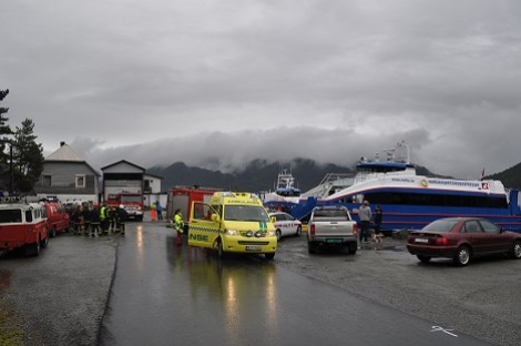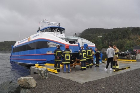 Hardangerfjordekspressen fekk store materielle skader og ligg no til kai ukøyrbar på Malkenes. Erstatningsbåt er sett inn i ruta.