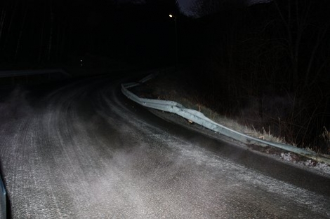 I Norlibrekka ved Grimsland, heilt nede i svingen, ligg rekkverket langs vegen flatt.