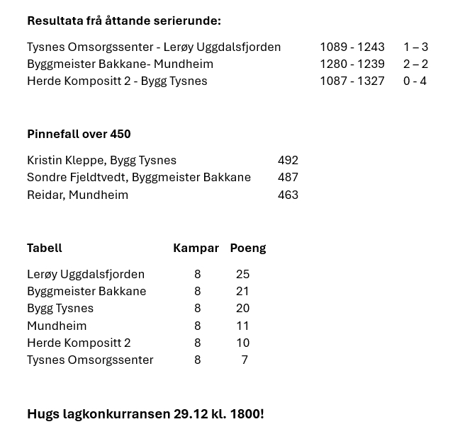 Lerøy Uggdalsfjorden måtte gje frå seg eitt poeng i kampen mot Tysnes Omsorgssenter, men leiar framleis 2. divisjon. Tabellen er delt på midten der tre lag så langt kjempar om teten.
