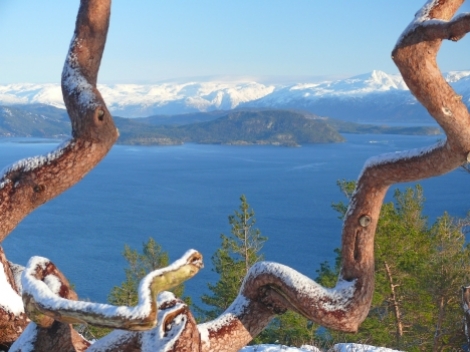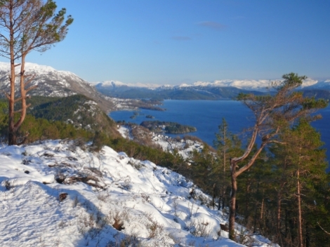 Utsikten over Onarheimsfjorden fra Blåbærhaugen i dag ved lunsjtid.