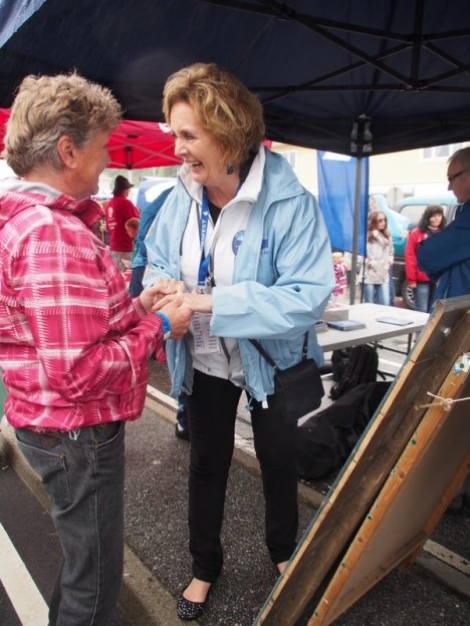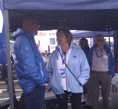 Bergensordføraren Trude Drevland var i dag gjest på frukostshowet i Bermudateltet. Deretter var ho med Tysnes Høgre på stand.Ho var svært nøgd med dagen og var imponert over Tysnesfestarrangementet.Her er ho i samtale med Kjell Brekke, i bakgrunnen Steinar Frugård og Egil Berge