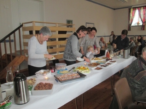 Så var det mat og mange av deltakarane hadde teke med ein liten rett slik at det vart eit rikhaldigt Koltbord.