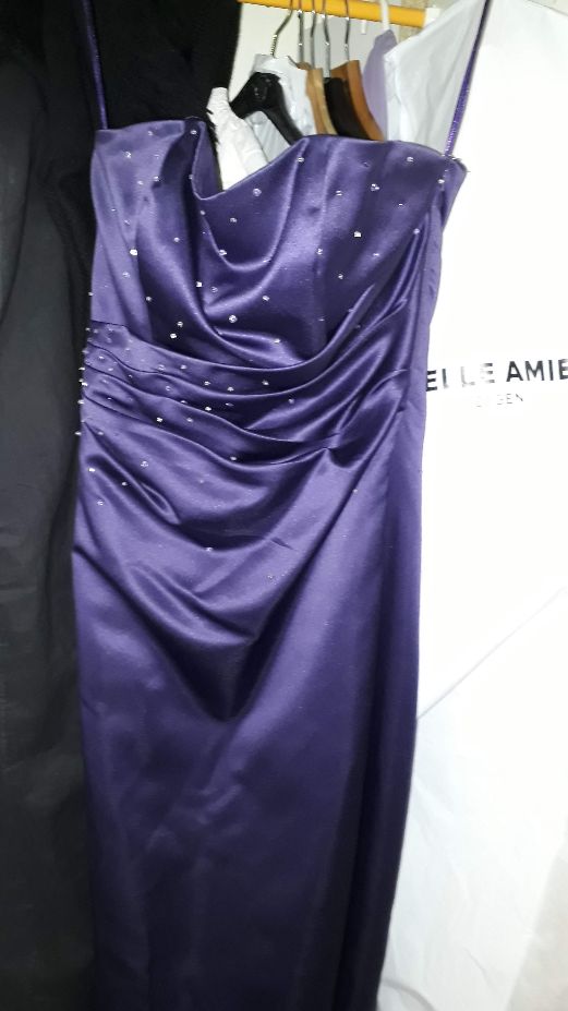 Har óg ein nydeleg mørk lilla selskapskjole til salgs, brukt 1 gong.