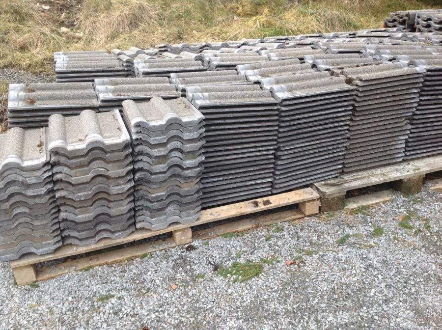 997 vanlige panner, 32 venstre endepanner, 31 høyre endepanner, 27 mønepanner inkl. 2 endepanner.