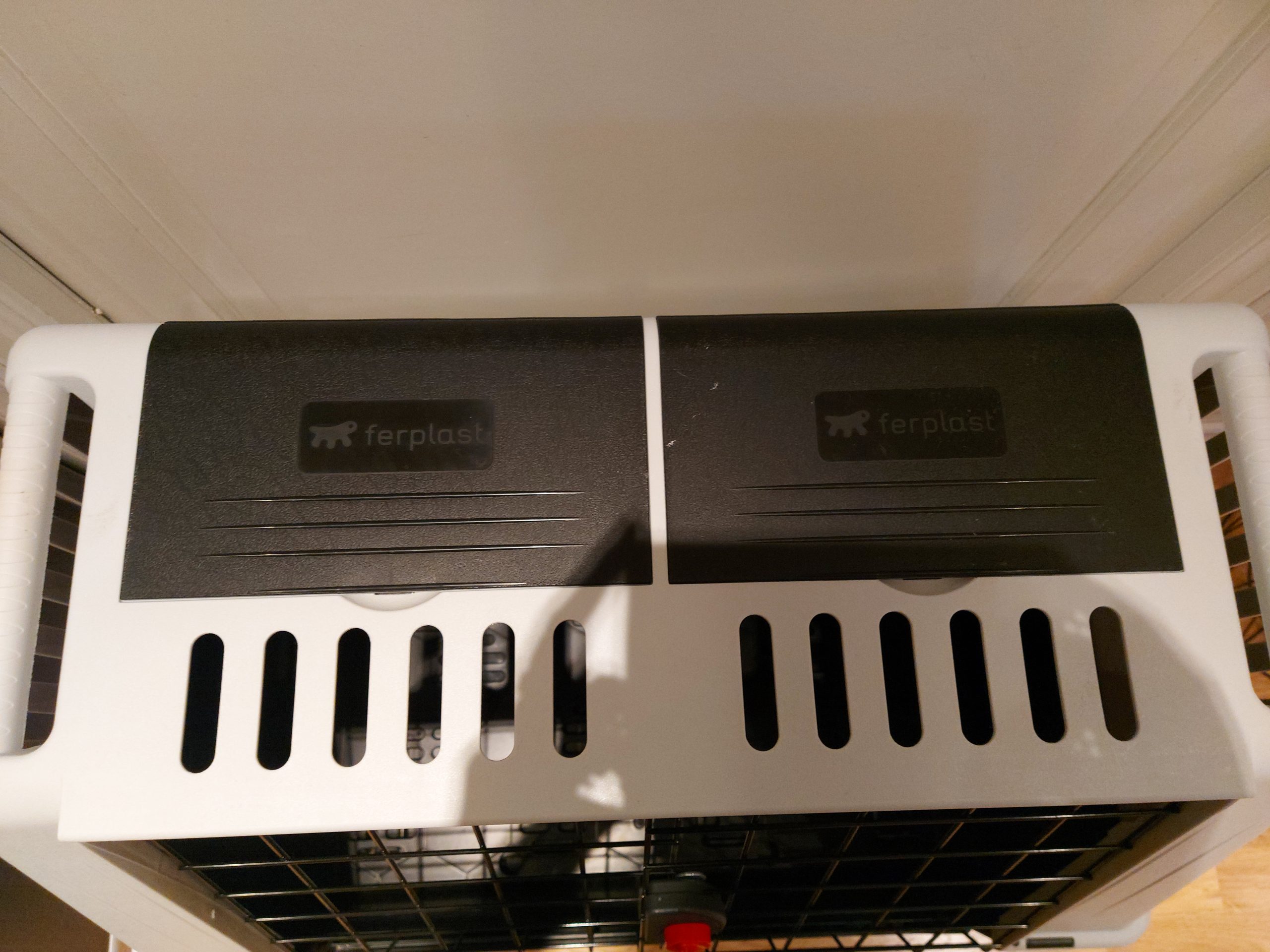 Ikke brukt da det var for stort til min bil. To luker på toppen til og ha hundesnacks og div i, og solide håndtak til og bære.