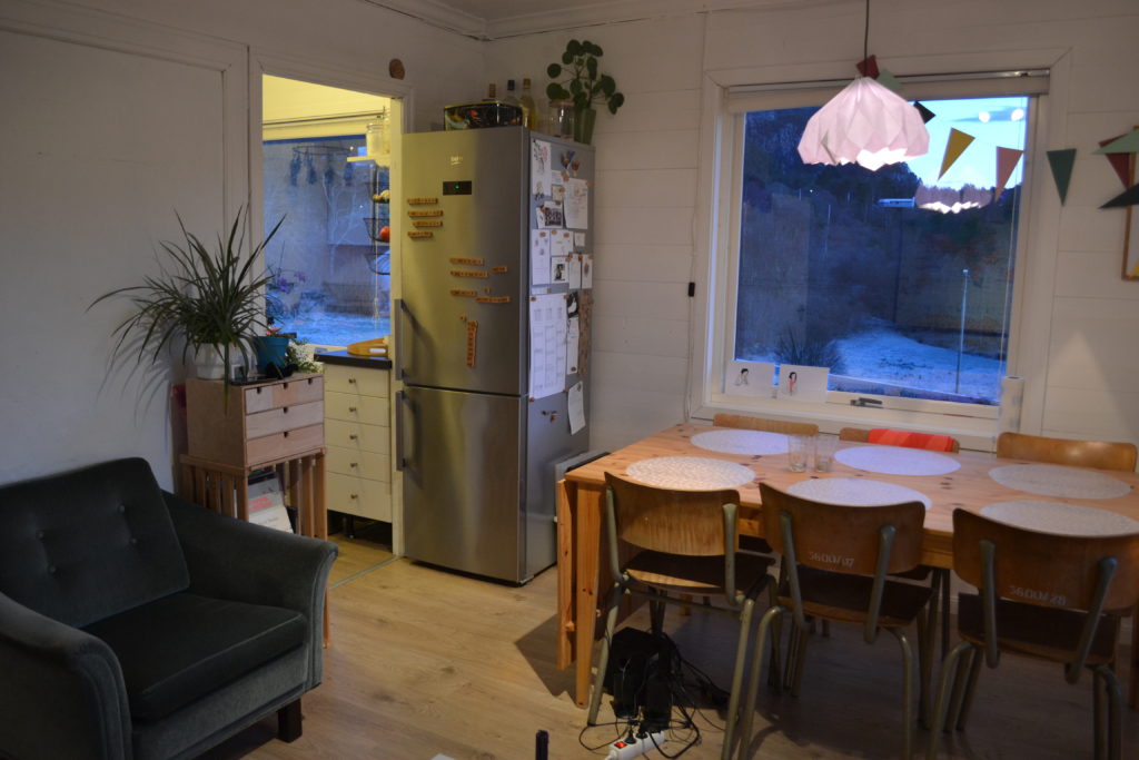 Opplegg for vaskemaskin samt bodplass og fryseboks i kjeller.