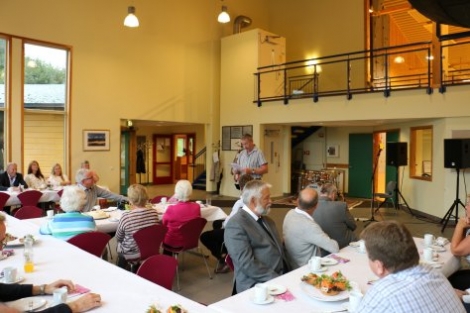 Helge Hauge, styreleiar i hallen gjennom alle 10 åra, haldt fyrste tale. Han takka både enkeltpersonar, lag og bedrifter med fleire. Han konkluderte med at noko av suksessen til den gode drifta har vore at brukarane av hallen har fått stor tillit, som dei har svart på med å ta ansvar for hallen. Samstundes har hallen vore for alle generasjonar og fleire brukargrupper utanom sport.