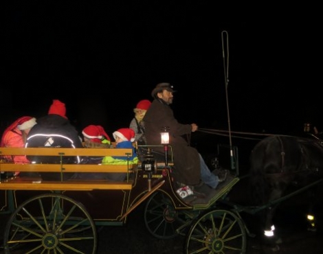 Å få sitja på med sjølvaste nissen og kusken hans var kanskje høgdepunktet for mangen av ungane på Nissefesten. Juletregang, sang og hornmusikk var i tillegg med å sytte for at den gode julestemninga kom fram!