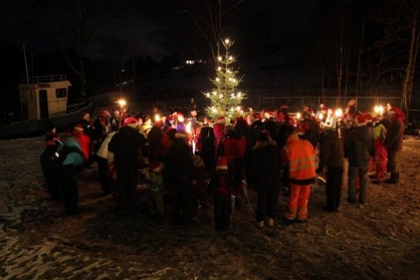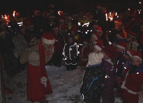 Det var mange som hadde tatt turen til nissefesten på Myklestad tysdag. Her var nissetog og samling rundt juletre. Borna fekk også besøk av nissen og stemninga var på topp.