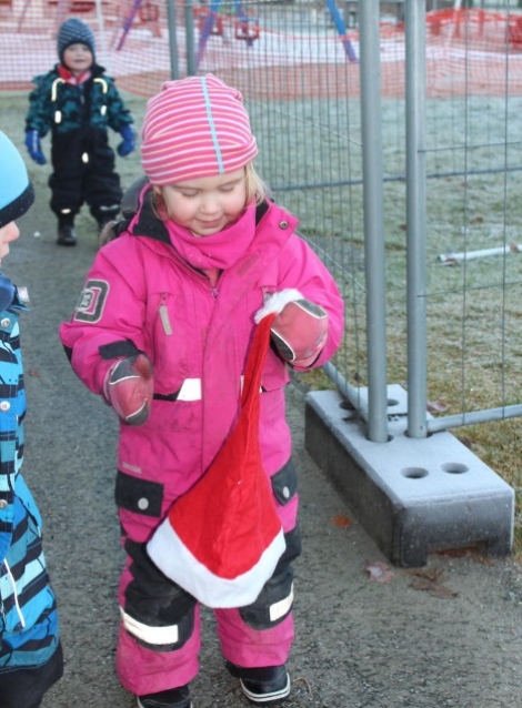Då ungane var ute på føremiddagen fann dei ei nissehue!