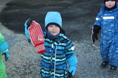 Dei fann og eit par raude nissevottar, og barna kom fram til at nissen hadde mista dei.