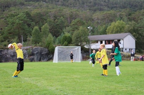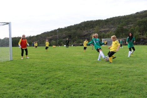 Laga spelte jevnt og det såg ut til at Njardar skulle vinna då dei leia 3 -2, men jentene i Søre Fusa viste flott innsats siste del av kampen og klarte to mål mot slutten. Resultatet vart då 4 -3 til Søre Fusa. Ein spennande kamp med godt spel av begge laga.