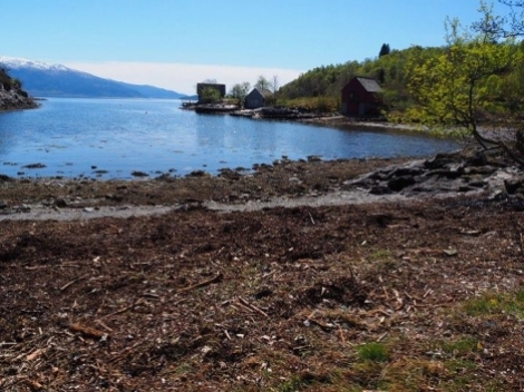 I strålande solskinn stilte 15 stykker for å hjelpa Rebekka Høgestøl med å rydda Kvalvågen.