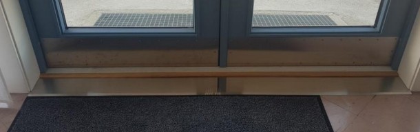 I forkant av dette blei det montert stålbeslag innafor to dører fordi belegget var skada.