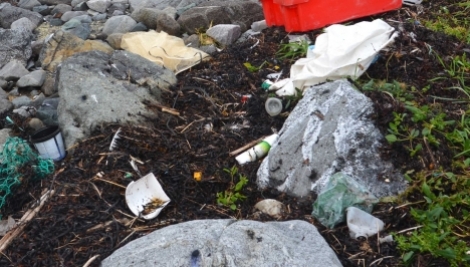 Når du er ute, tenk deg om og ikkje kast søppel på sjøen.