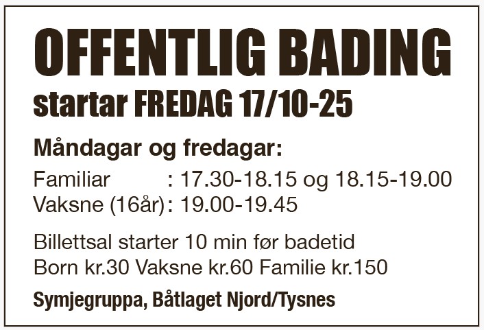 Offentleg bading startar opp igjen
