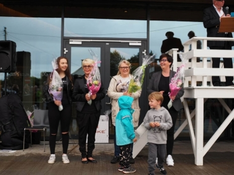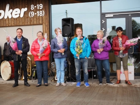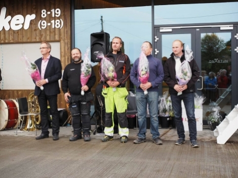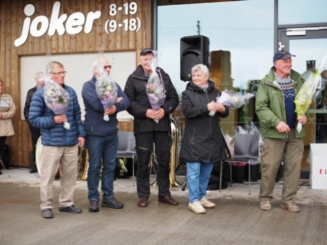 Gerhard Meidell Alsaker heldt takketale og gav blomar til alle involverte, mellom anna prosjektleiarar, arkitektar, entreprenørar, butikkeigarane til tidlegare Joker Flakkavåg og Joker Årbakka og grunneigarar.