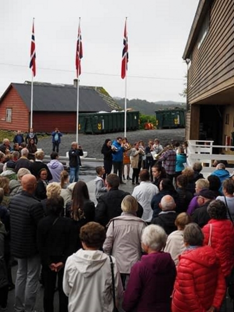 Det var fyrst samling utanfor med korpset og flott song av Lise Sjåk Dalen, Magne Storesætre var konfransier.