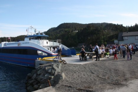 Før snorklypping, kake og kaffi talte ordføraren. Han rosa særleg familien Anders Berge som i alle desse åra har stillt kaien sin disponibel for hurtigbåten. Ros vanka det også til Oddvar Lunde og dei andre grunneigarane som har stått på for å få til den nye kaien.