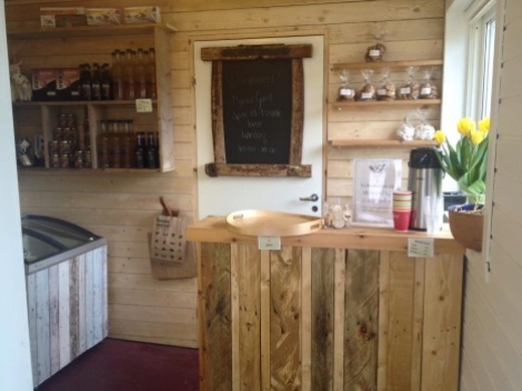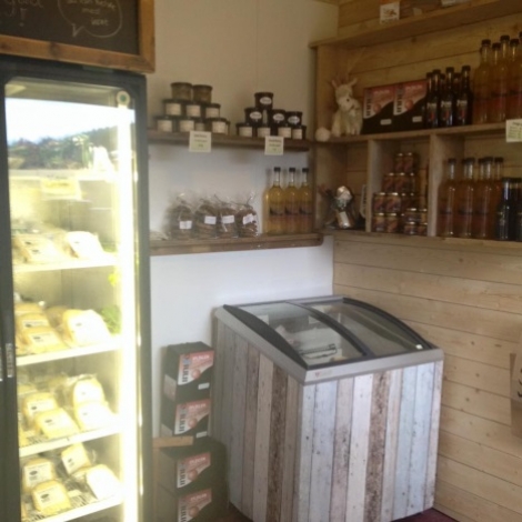 Gardsbutikken freista med mange ulike delikatessar haust chutney, innigo eplemost, gårds iskrem og sjølvsagt ulike typar ostar produsert på garden.