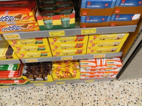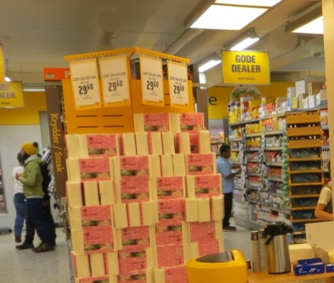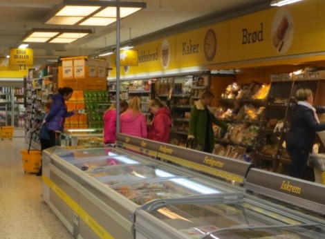 Frysediskane og lågare reolar er plassert framme i lokale medan reolane i bakkant er noko høgare.