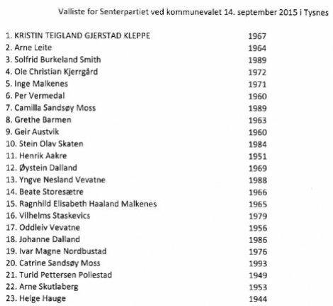 Senterpartiet hadde nominasjonsmøte måndag 23. mars.