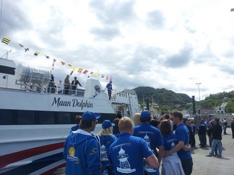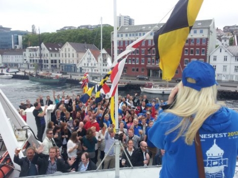 Frå Tysnes stod ein stor delegasjon klar for avreise like før klokka 1330 på Våge kai. Etter planen skal dei vera tilbake etter konserten på Tysnes i 3-tida i natt.