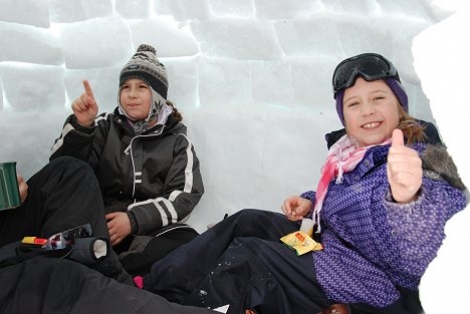Her har pappaen til Mia og Maren fått det til. 3 timers arbeid med god hjelp gjorde sitt, så kunne kakao og Kvikklunch nytes i ly for vinden.