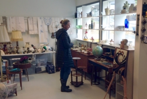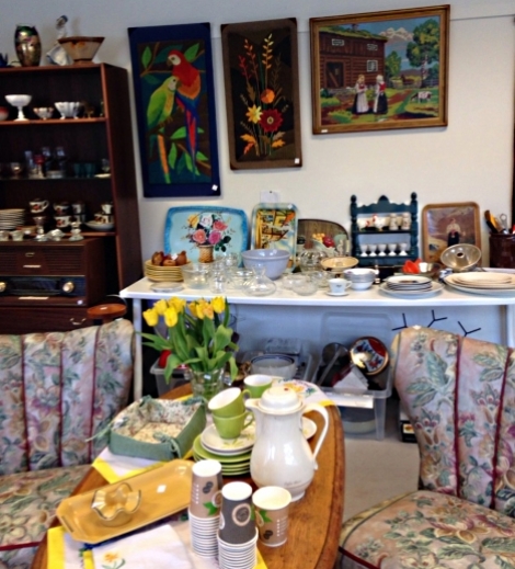 Inne i butikken er det som å trø fleire år tilbake i tid. Her finn ein koppar og tallerkar, vasar, pynteting, lampar, gamle metallboksar, bilete, småmøblar, maritime gjenstandar og mykje, mykje meir! Alt frå gamle antikvitetar til fargerike retro gjenstandar.