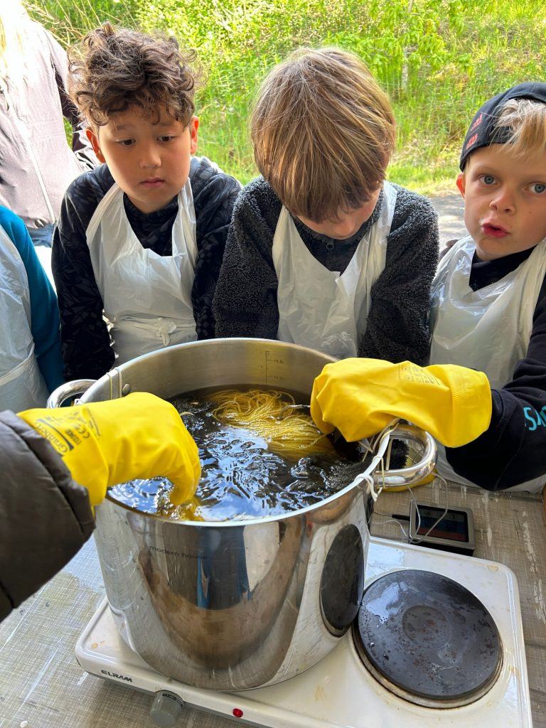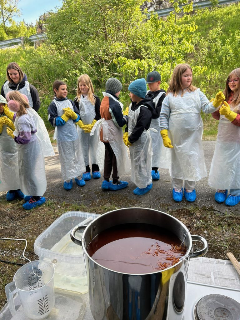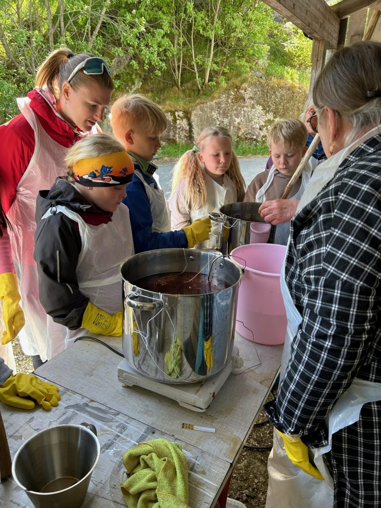 I går, torsdag, hadde Tysnes bygdekvinnelag plantefarging med 4. klasse på Uggdal skule.