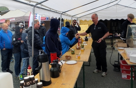 Ein effektiv gjeng sytte for at alle fekk burger, hotdog, kaffi og saft.