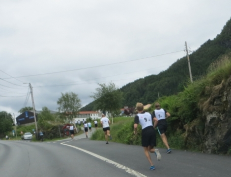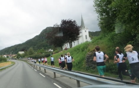 Det var ei lang rekkje med deltakarar langs vegen frå SvingenPuls og mot Tysnes skule.