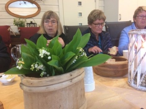 Me blei servert heimabakt flattbrød med og uten ramsløk. I tillegg hadde Gerd dipp med ramsløk, og nydelege horn med ramsløk. Flott oppdekka langbord, ein fantastisk koseleg kveld.