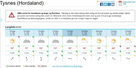 Bilde er teke mellom byene i dag. Når vèret er som no, kan det vere trøst å sjå at me har både sol og varme i vente: