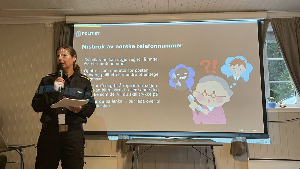 I siste innslag fekk ein høyre av Marita Flemmen Skogsvoll, politi på Tysnes, om korleis ein kan verna seg mot vinningskriminalitet og kva svindelmetodar ein må vera på vakt for. Svindlarane blir berre meir og meir utspekulerte og ein må vera på vakt heile tida.