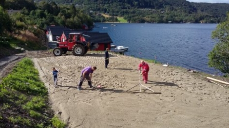 Midlane vil vere ein del av finansieringa til eit sanitærbygg med toalett og ei sandvolleyballbane. Tidlegare har ein mellom anna fått på plass ei flytebrygge med stupebrett. Stranda vart rydda på dugnad tidlgare i vår, og er klar til badelystne gjestar.