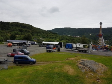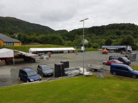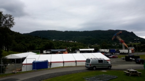 I dag har telta der det skal serverast mat og drikke kome på plass, og arbeidet med å få på plass scenane er godt i gong.