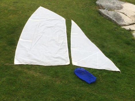 Fokk og Storsegl i flott stand. Laget av kunstfiber og er svært lett.
