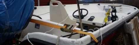 Båt og motor har vært under og båt har fått hull i skråget etter heving.