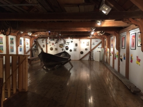 I 2. etasje i Sjøbua har dei ei fantastisk flott utstilling laga av Onarheim Barneskule. Og i fyrste etasje har Elin Flindt salgsutstilling med akvarellar med flotte vestlandsmotiv.