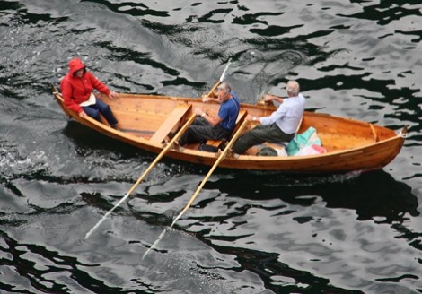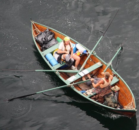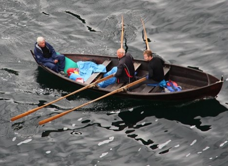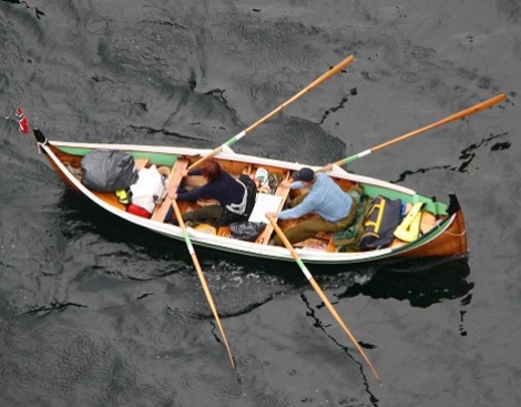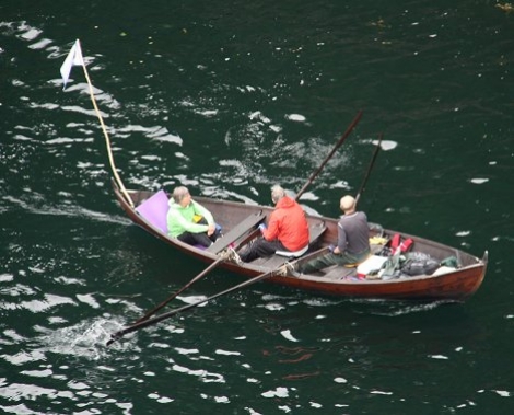 Det var fine roforhold søndag. Rundt halv tolv hadde dei eit lite stopp ved Korsnes, før dei rodde gjennom Lukksund og innom Stussvik, før dei kjem til siste stopp Årbakka.