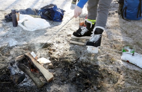 Det blei fyrt opp bål som ein kunne varme seg på og ein del hadde med seg grillmat.