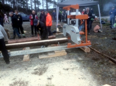 Egil Instøy demonstrerte ny gards-tømmersag som Fredrik Landråen har kjøpt for fast montering heime i Landrøyo. Etterkvart er det mange tilsvarande tømmersager i Tysnes.