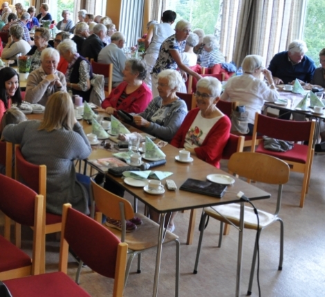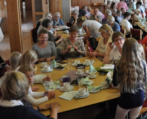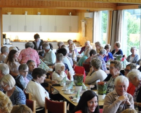 Bedehuslaget hadde stelt i stand mat og det vart ein god drøs rundt borda.