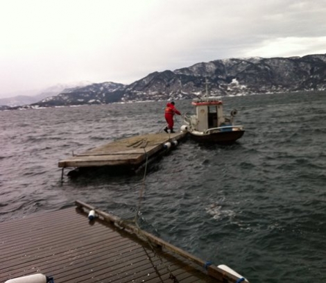 Også på Malkenes har vinden tatt tak. Store bølgjer på sjøen gjorde at ei flytebrygge vart delt i to, og delvis vart øydelagt. Ein sjark som låg ved flytebrygga vart berga i naust utpå dagen.