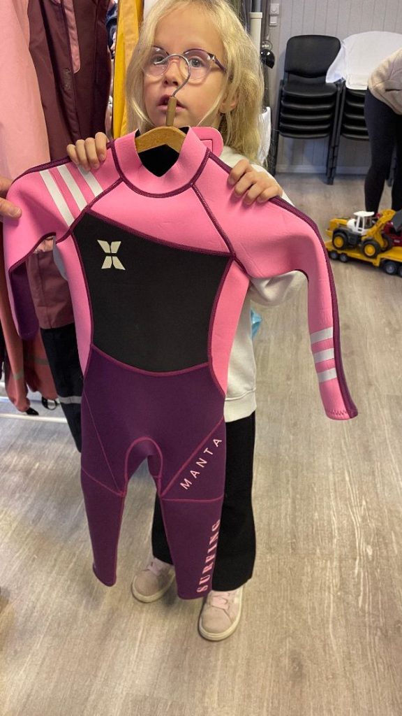 Elida Lunde Mundal lure på om våtdrakta passar.