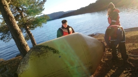 Dagens fangst var ei kjempestor blåse som må ha forsvunne frå eit oppdrettsanlegg.
