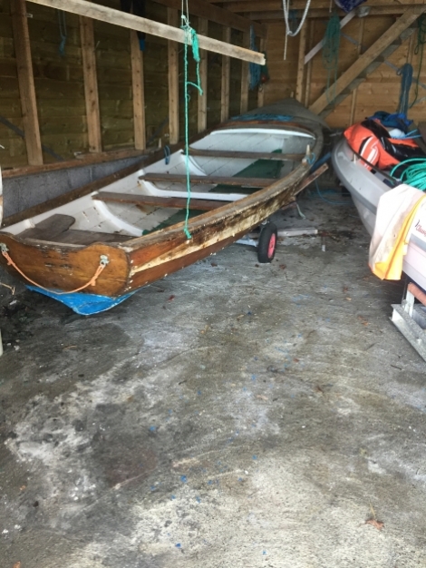 Gammel Strandebarmer til salgs. Båten er fra 60-tallet, men har lagt ubrukt i naustet vårt de siste 20 årene.