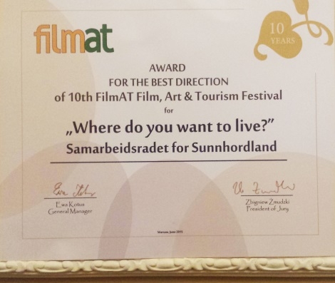 Det var i mai at Samarbeidsrådet for Sunnhordland vart kontakta av Film, Art & Tourism Festival i Polen. Dei hadde oppdaga filmen «Where do you want to live?» (Sunnhordlandsfilmen) via youtube og nettstaden til omdømmeprosjektet.